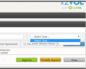 Staff users in x2VOL can approve, partially approve or deny hours submitted towards their organization's goals.
